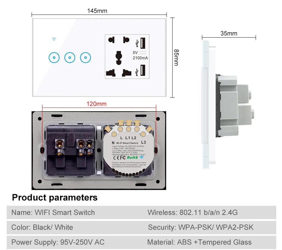 Tempered Glass Touch-Screen of this diy smart switch is sensitive to touching control, premium durable glass material ensure of up to 20 million times touching numbers by our rigorous testing.