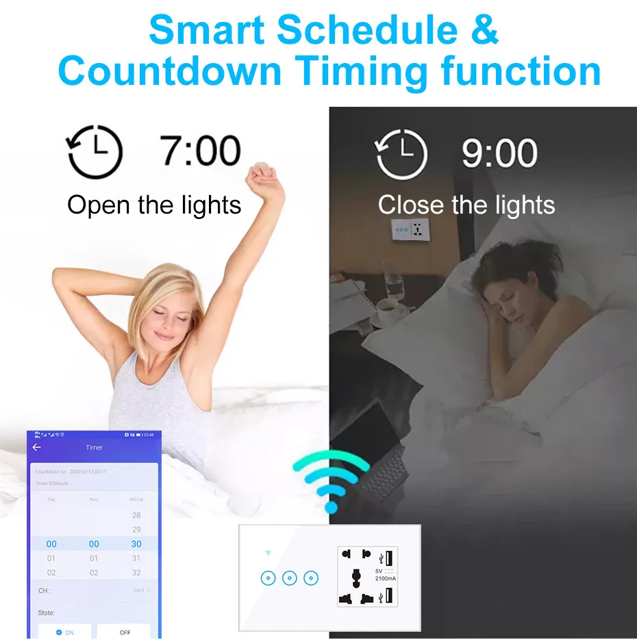 The smart timer switch will automatic turn devices on/off after setting some timer for this switch, essential for daily schedule planning and bring you a convenient and intelligent lifestyle.