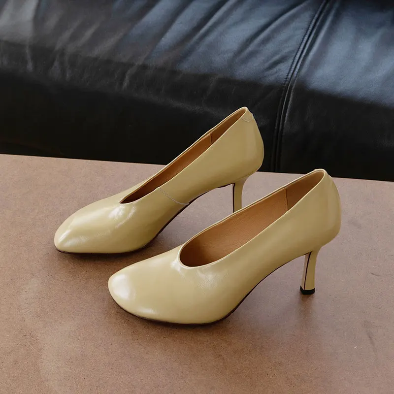 Giày Cao Gót Nữ Phong Cách Retro Pháp Da Thủ Công