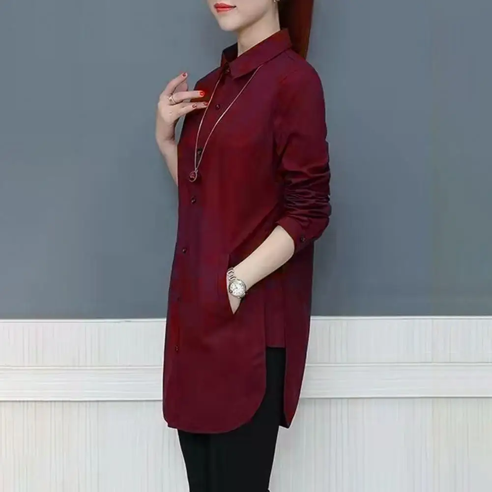 Women Shirt Elegant Side Split Irregular Hem Solid Color Basic Shirt Spring Summer Mid Length Underlay Shirt Casual Loose Shirts