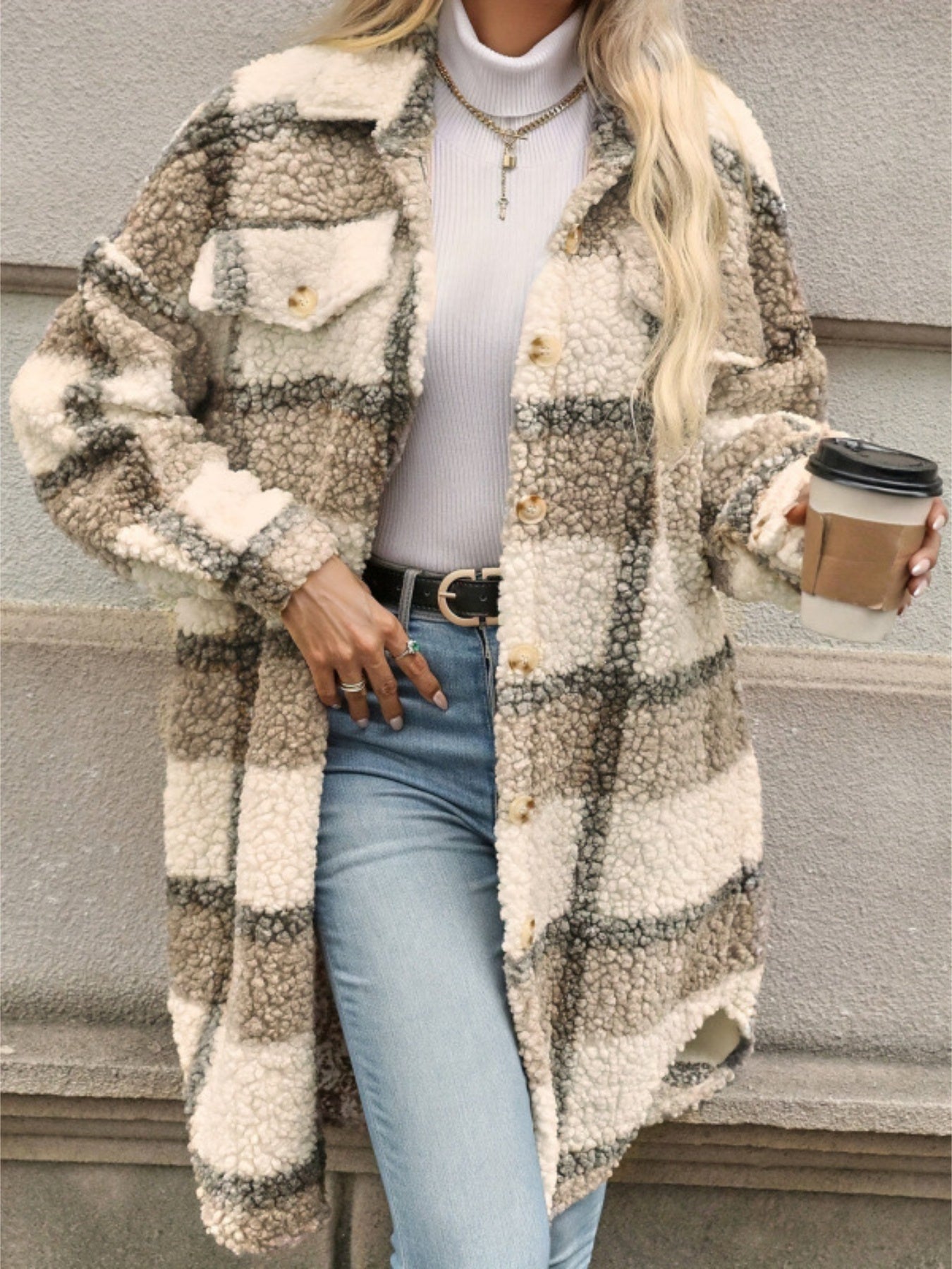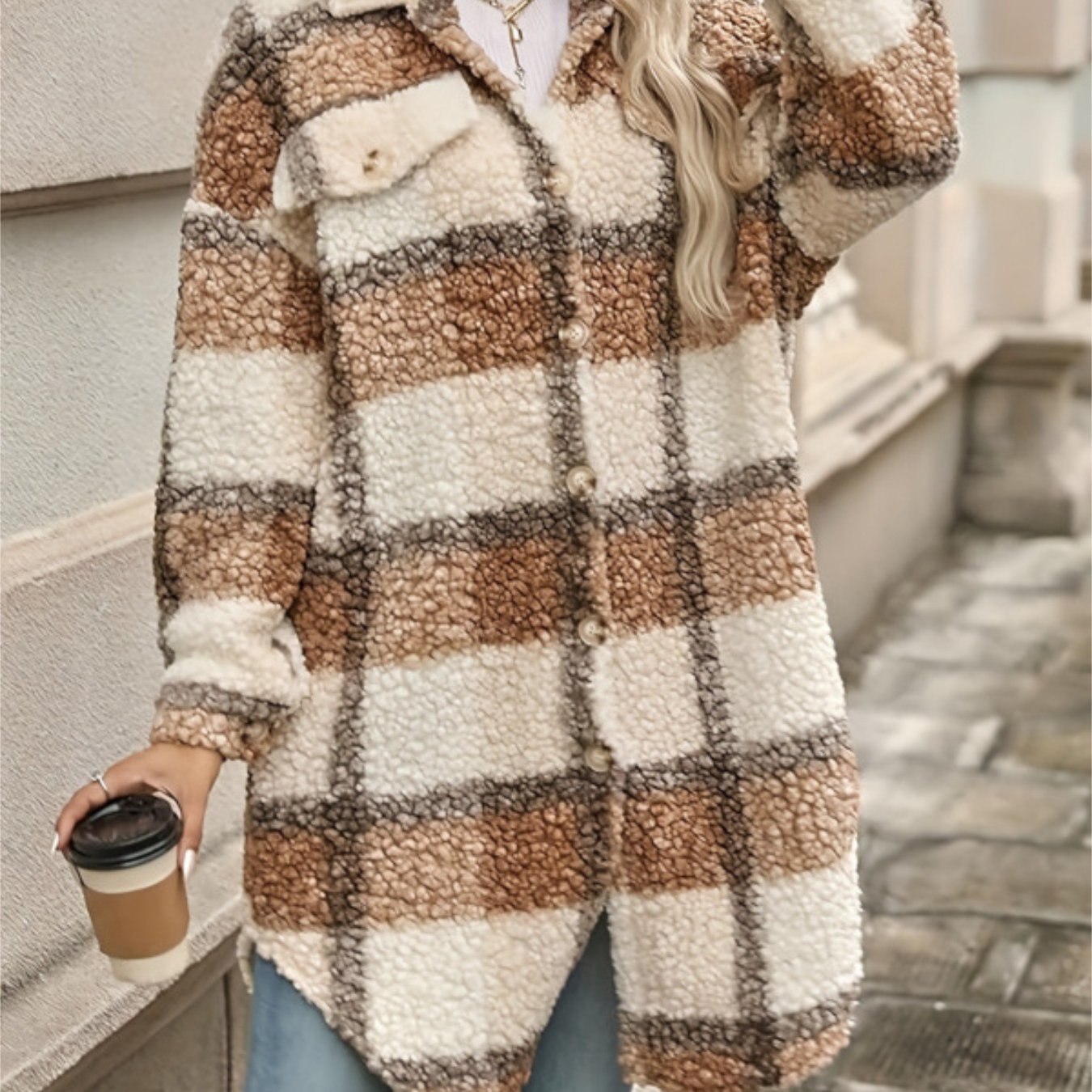 Áo Khoác Nữ Dáng Rộng Kẻ Sọc Y2K Ấm Áp Cổ Điển Mùa Đông