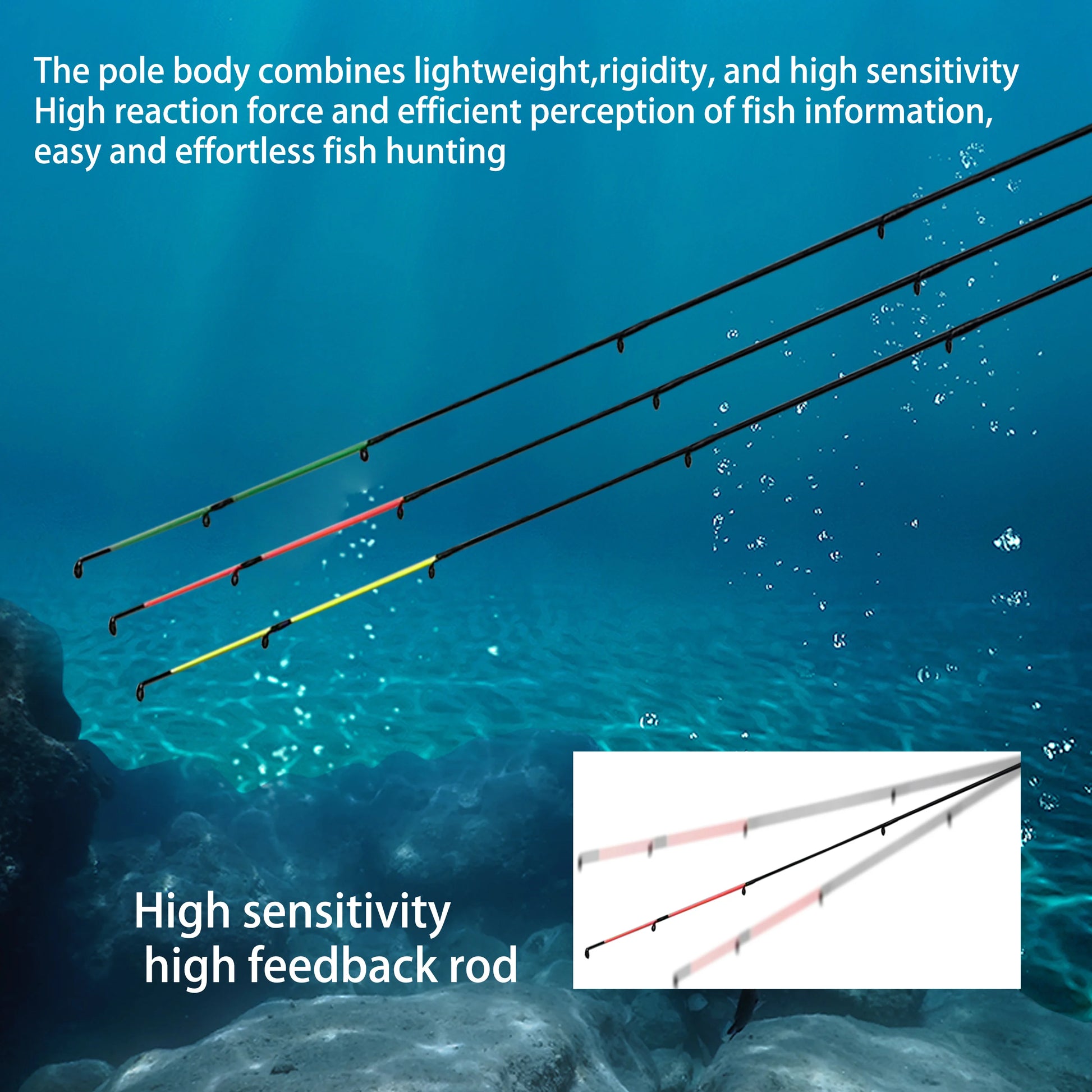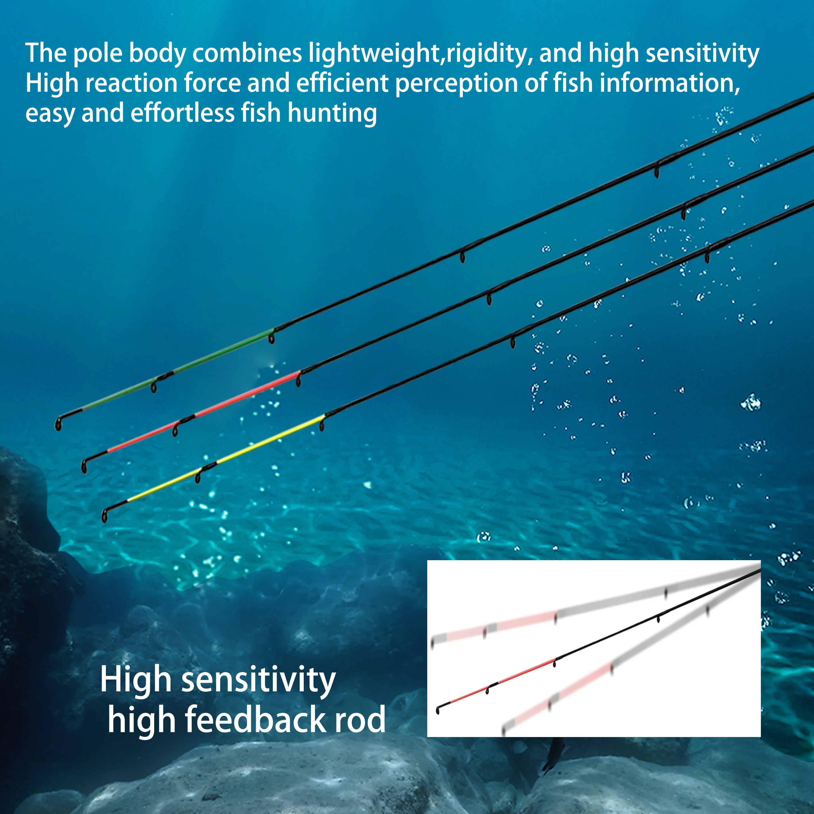 The world's popular style of feeder fishing rod 3m 6-section design for easy portability. overall black appearance. piano paint process paint. equipped with 3 different tonal rods. segmented handle design. fishing feel. plaid. black metal bracket. matching ceramic guide ring. beautiful and durable