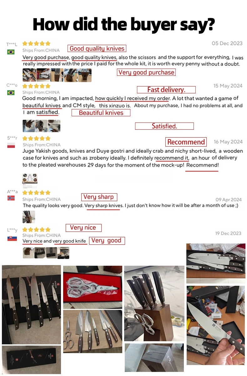 Bộ Dao Bếp Đa Năng XINZUO 7 Món Thép Đức 1.4116