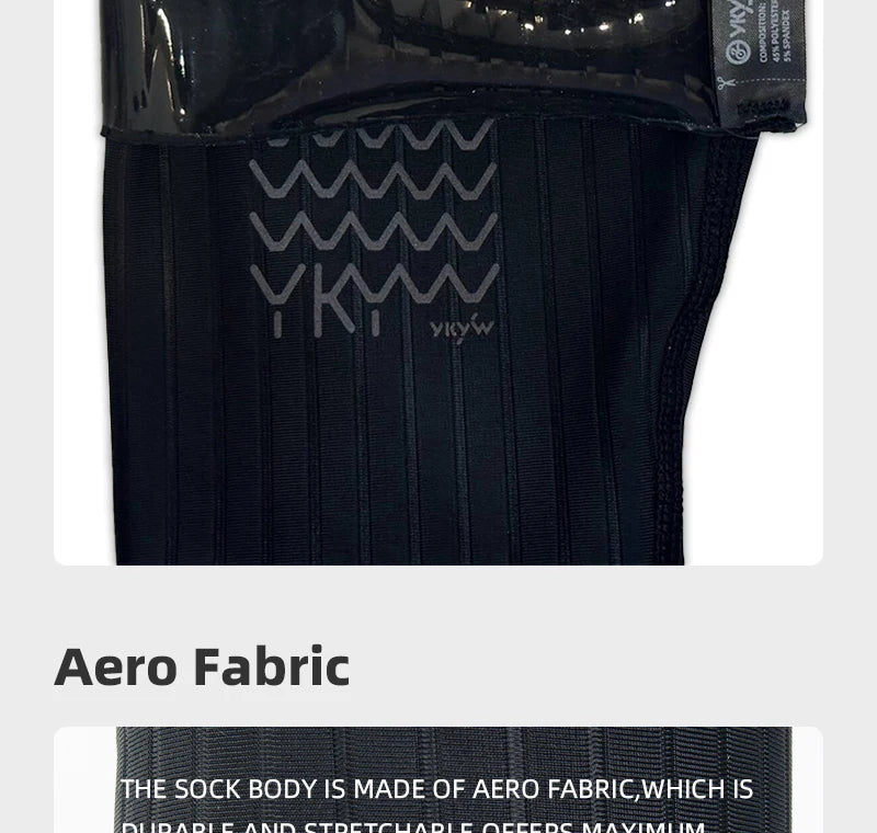 •The sock body is made of aero fabric,which is durable and stretchable,offers maximum aerodynamic gain in race level riding.