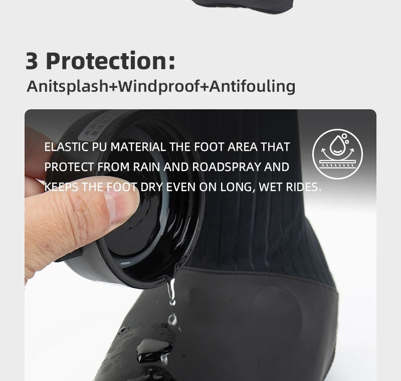 ,Elastic PU material the foot area that protect from rain and road spray and keeps the foot dry even on long, wet rides.