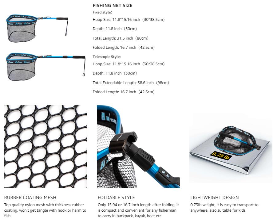 YVLEEN Floating Fishing Net for Steelhead, Salmon, Fly, Kayak, Catfish, Bass, Trout Fishing, Rubber Coated Landing Net for Easy Catch & Release, Compact & Foldable for Easy Transportation & Storage, Best for Christmas