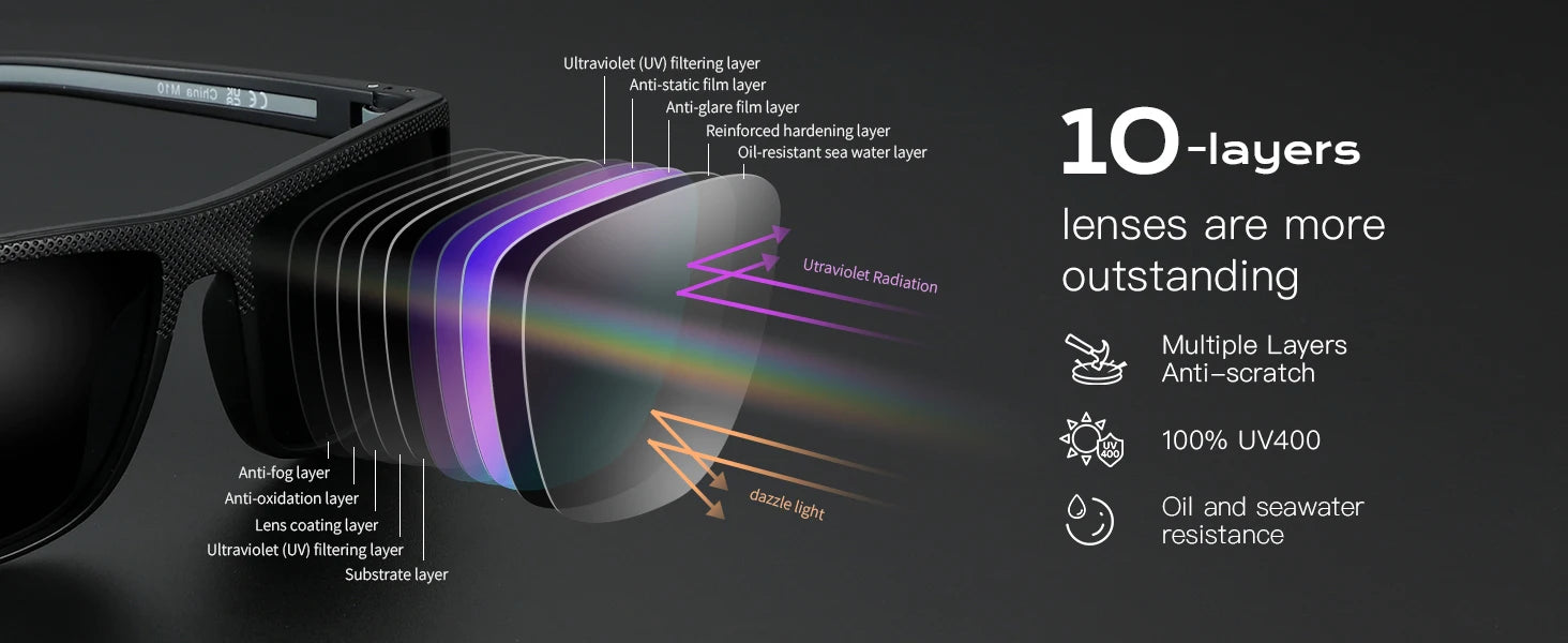 Lens Feature: These polarized sunglasses are made of TAC lens material that blocks 100% UV rays for superior eye protection.