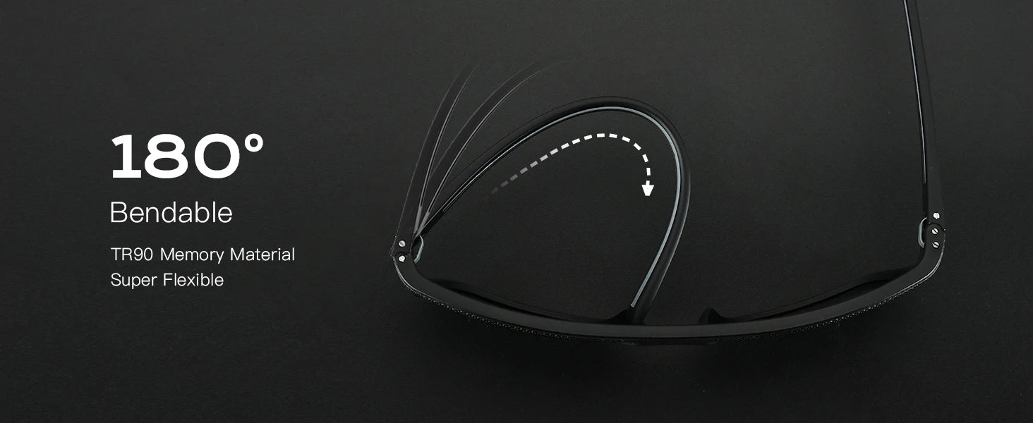 【Lightweight TR90 Frame】The Cool Black Unbreakable Sunglasses are Made of Premium TR90, Ultra Light Weight, Flexible, Durable, Produced Through Swiss Technology as a Resilient Thermoplastic Memory Material. Non-slip Nose Pads are Comfortable & Skin-friendly. Unique Flex Hinges Design, Don't Press Head.
