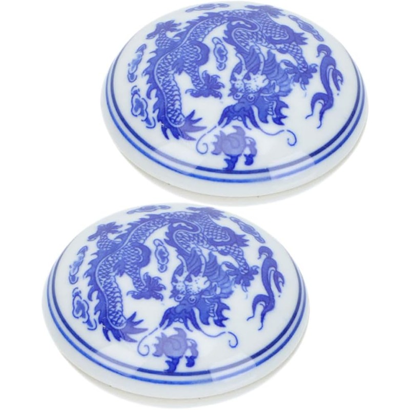 兩件式中國書法印章套裝,含紅色印泥和藍白瓷盒 - 傳統亞洲藝術硯台,用於印章、姓名印章、繪畫用品,2.56英寸小巧便攜印章,適用於書法、藝術、文檔