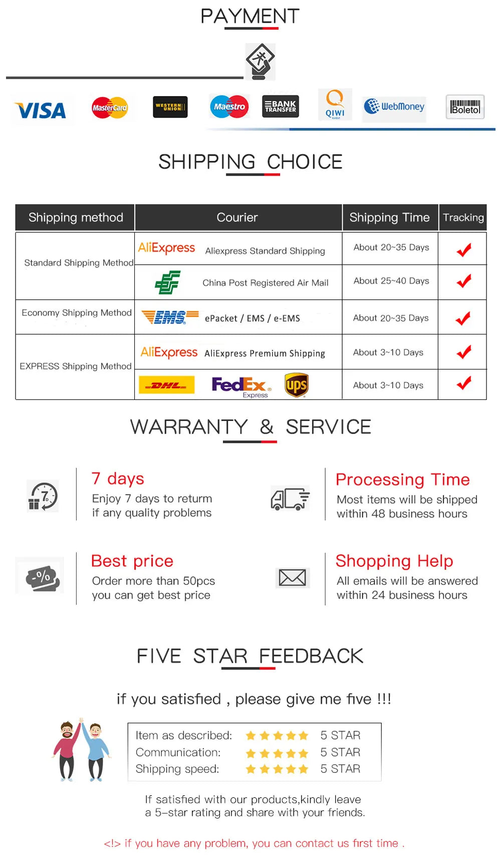 付款條件: T/T、西聯匯款、速匯金、PayPal等