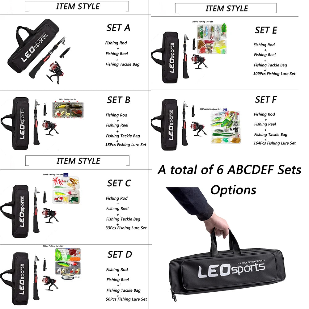 1.6米伸縮式海釣竿套裝,含紡車輪、魚餌、路亞套裝、旅行釣魚裝備配件包,6套可選。