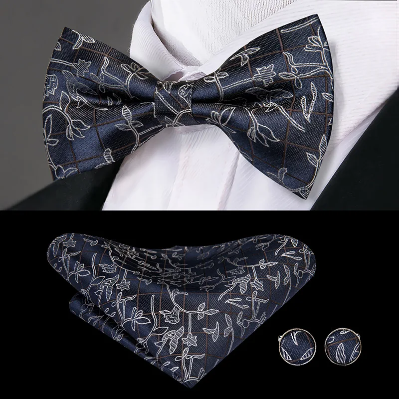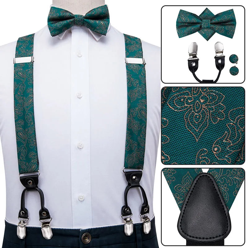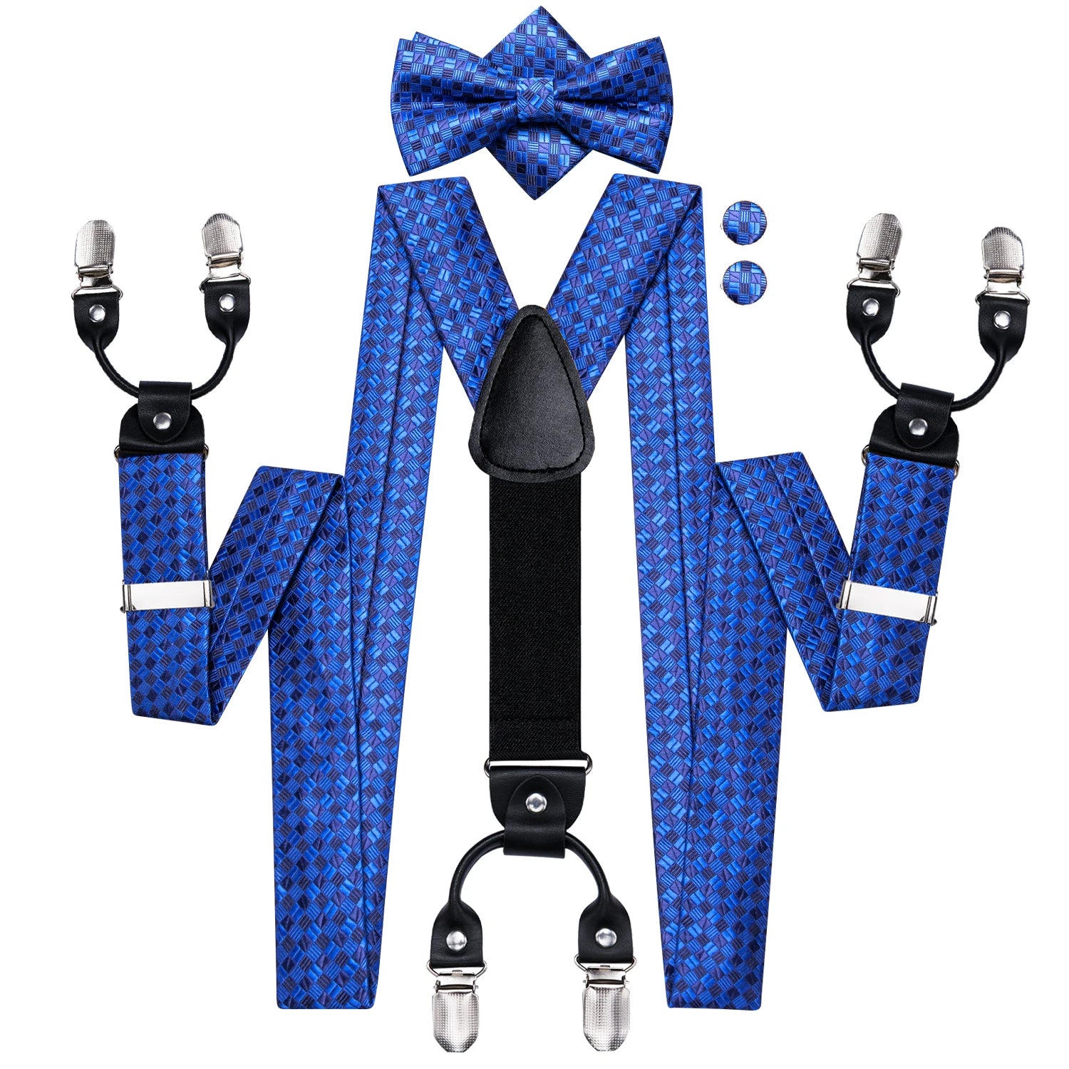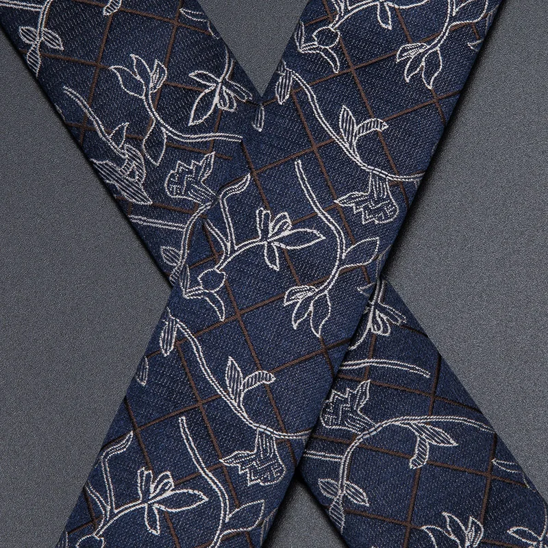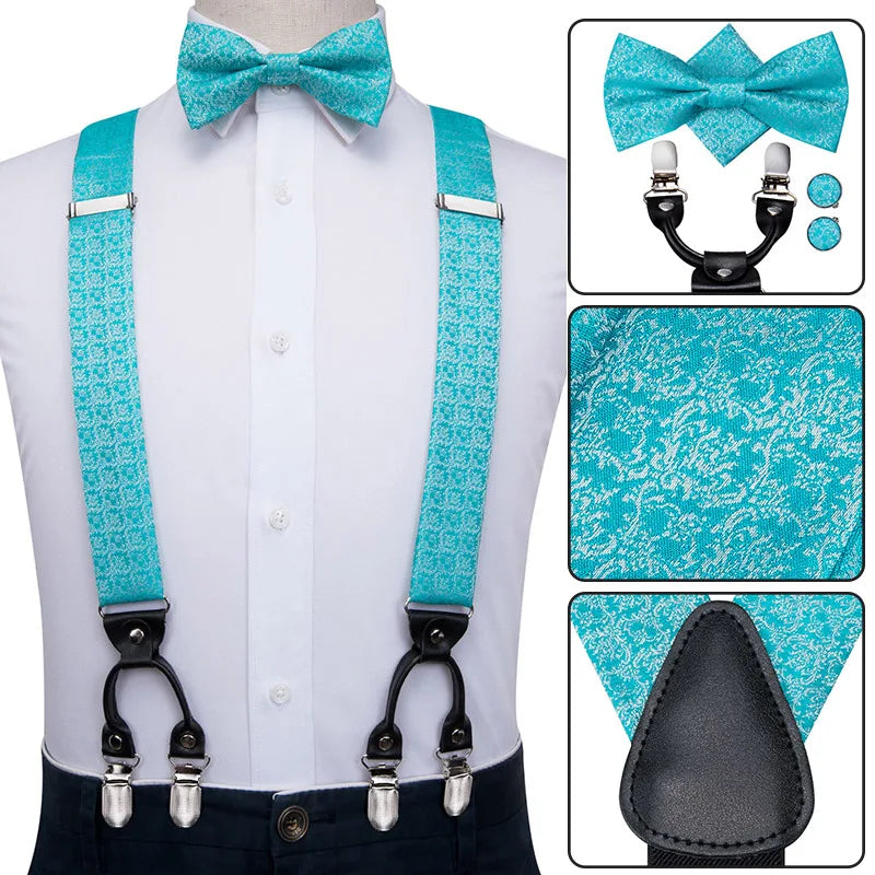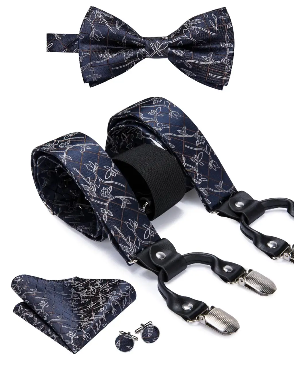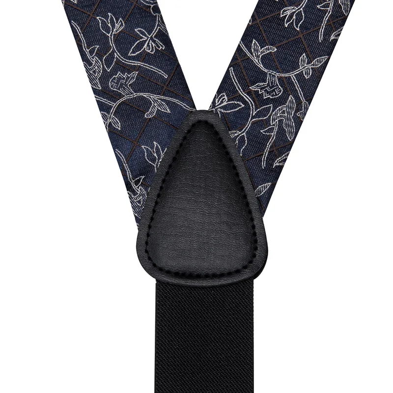 BD-3031 Hi-Tie 奢華品牌真絲男士吊帶 時尚藍色花卉吊帶領結套裝 皮革金屬夾吊帶