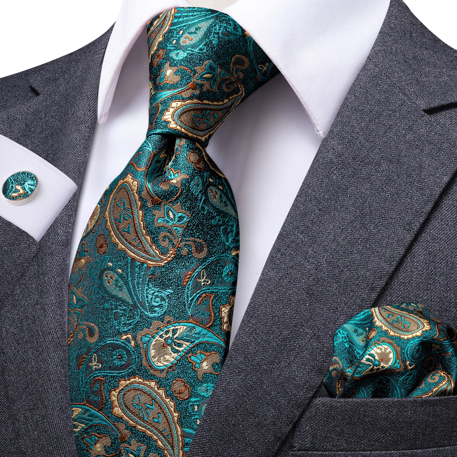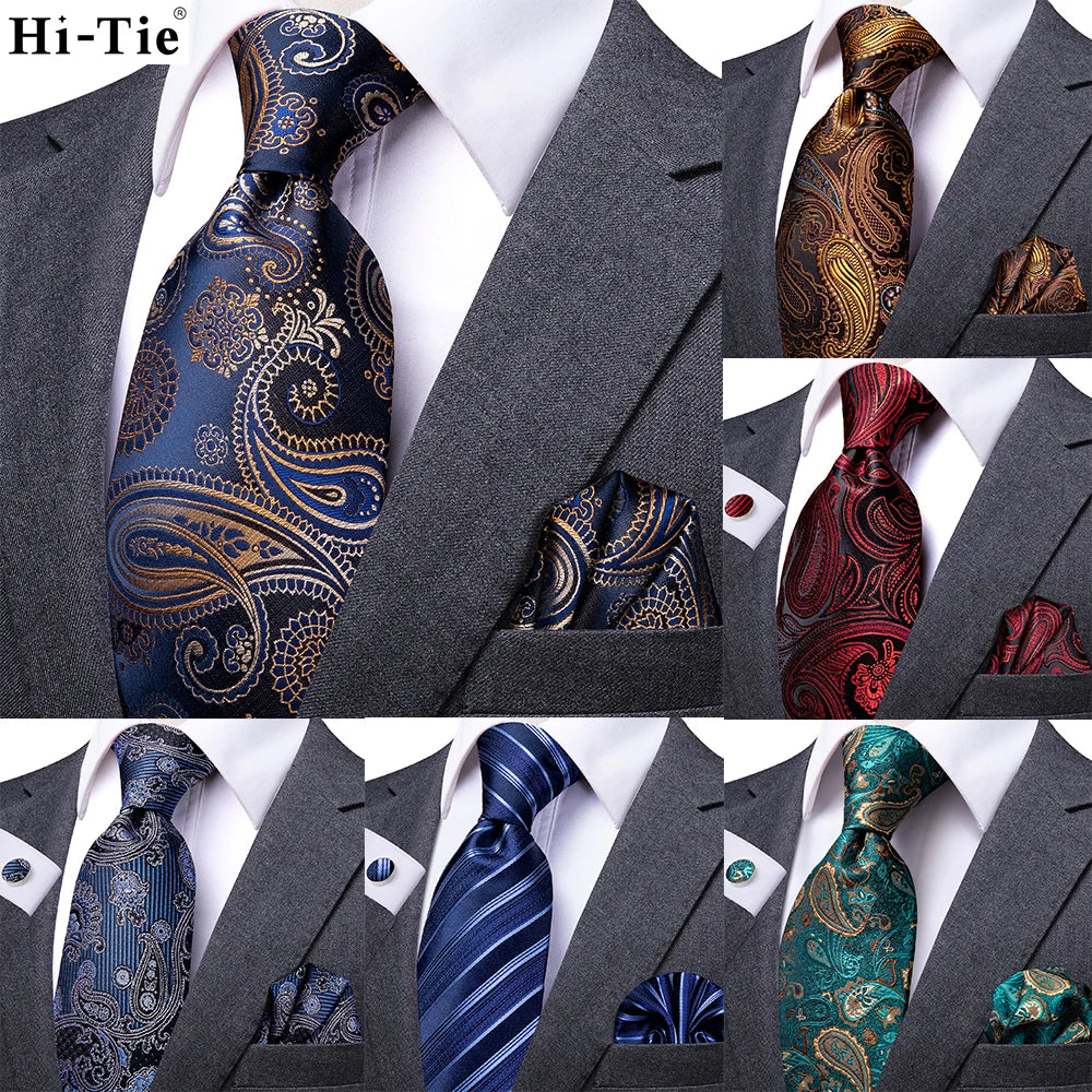 佩斯利花紋160公分高品質男士高領真絲婚禮領帶