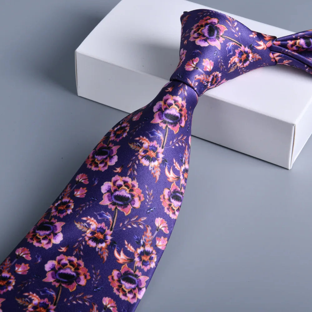 經典花卉圖案真絲領帶 8 公分 - 優雅紳士