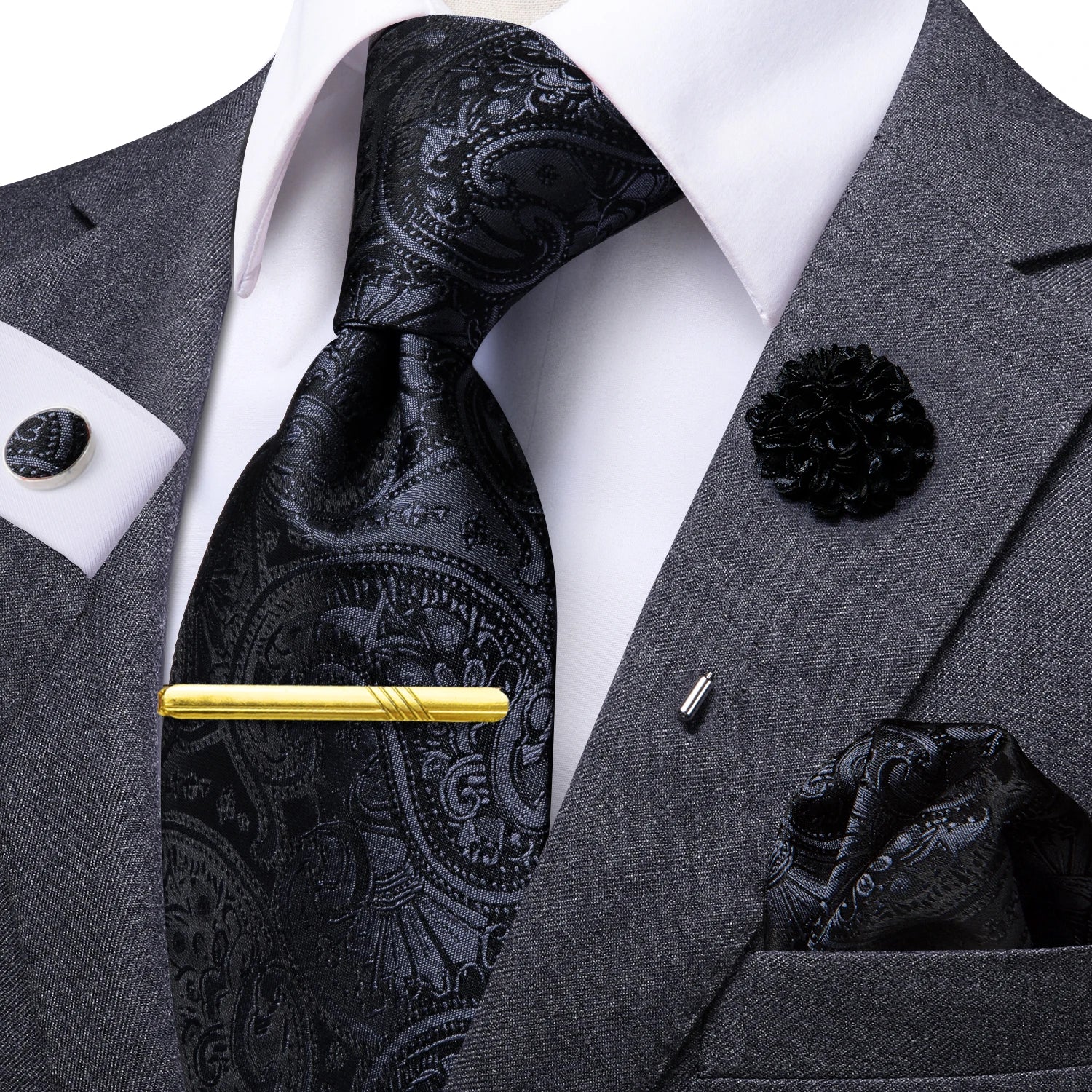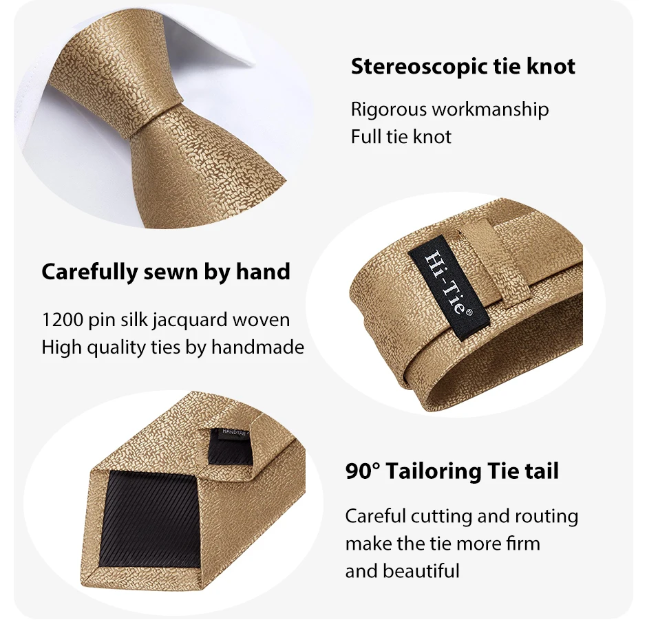 奢華金棕色高領真絲領帶及配件
