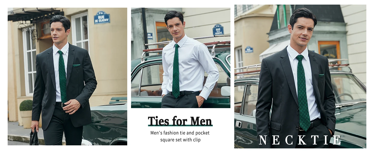 領帶套裝:男士領帶、口袋巾、袖扣和領帶夾