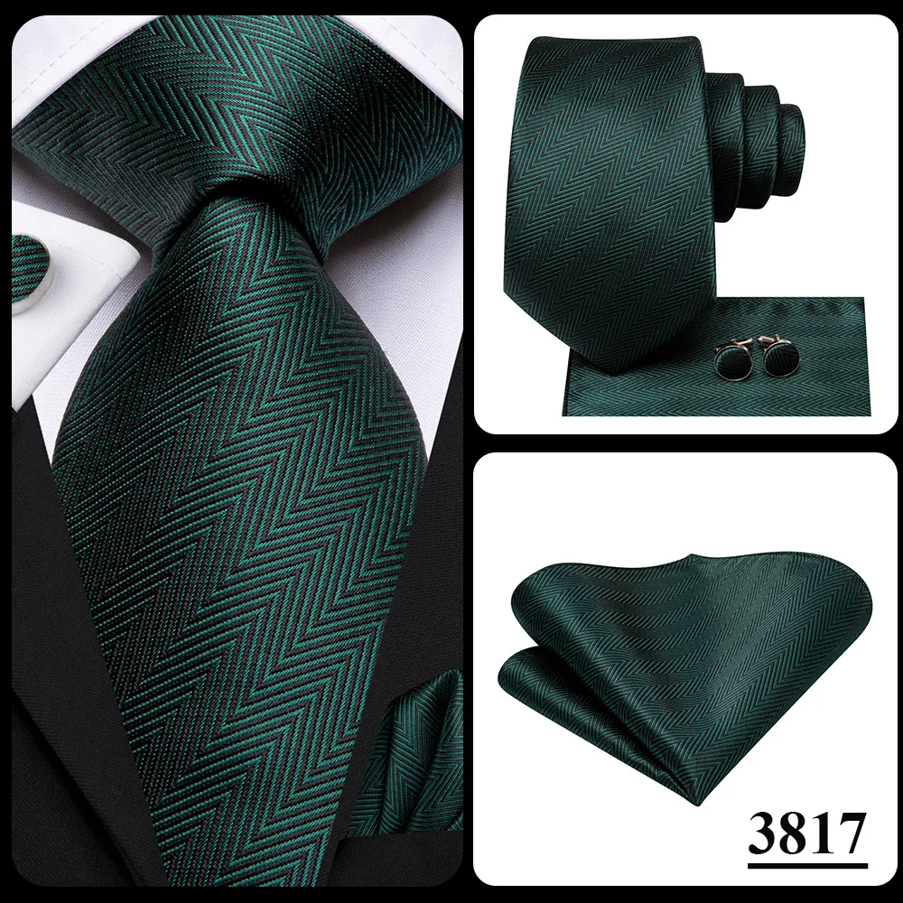 Hi-Tie 深綠 Psialey 絲質優雅領帶,男士新郎婚禮領帶,含口袋巾、袖扣等配件,批發設計師款
