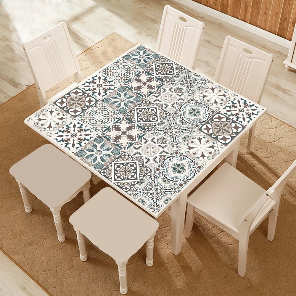 10 片裝藍色和灰色霧面牆貼膜適用於廚房防濺板地板磁磚/地面 PVC 藝術桌布即撕即貼