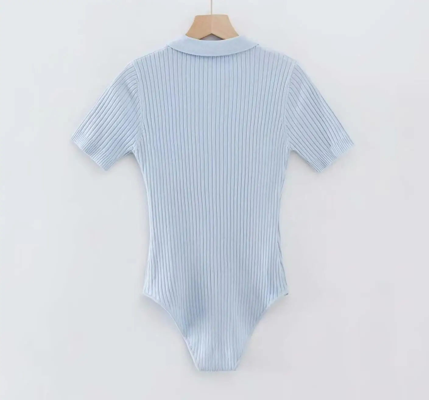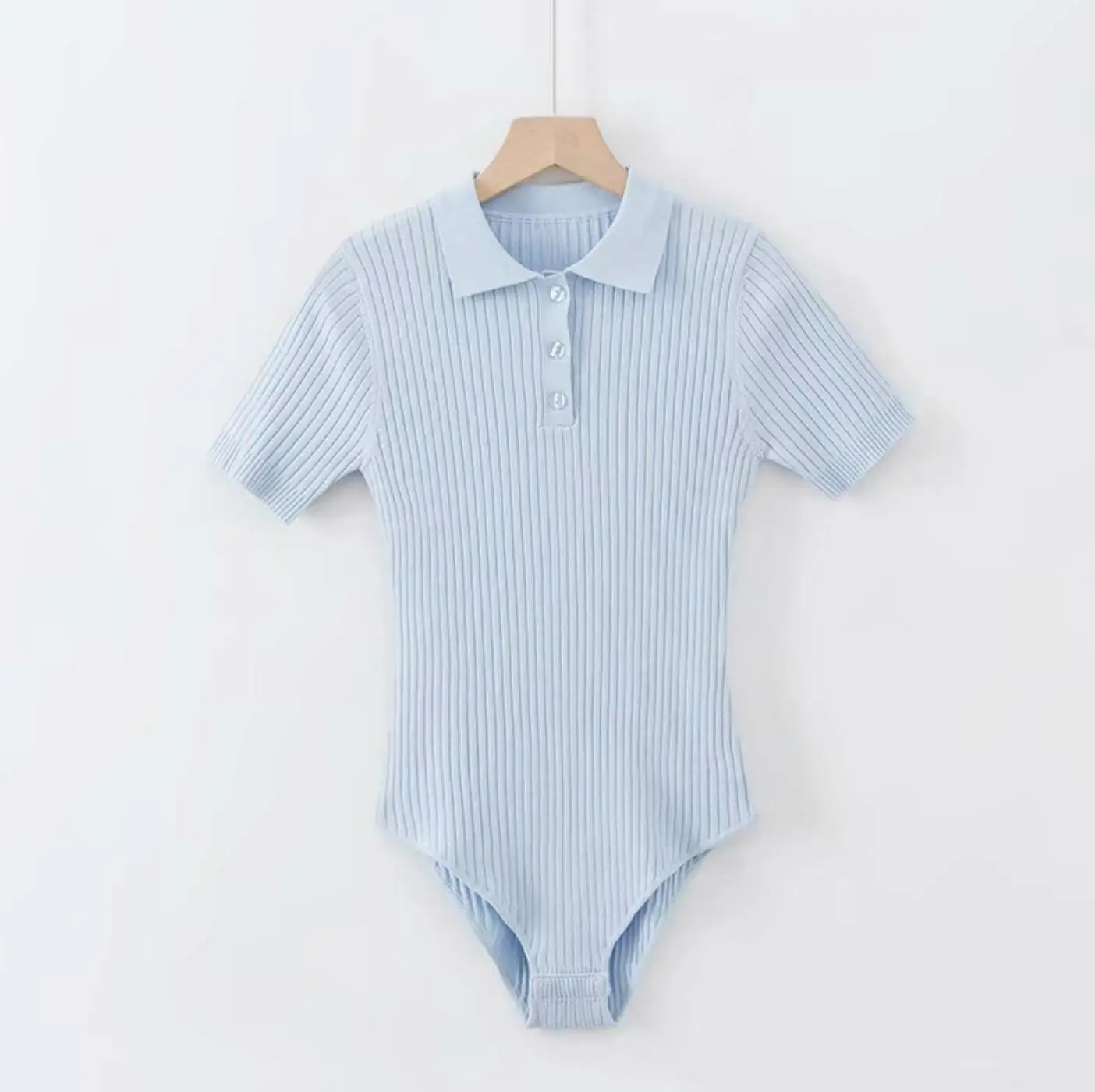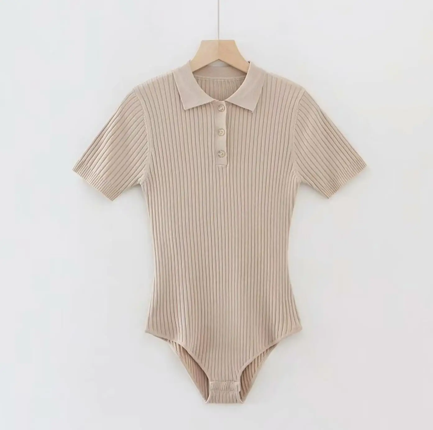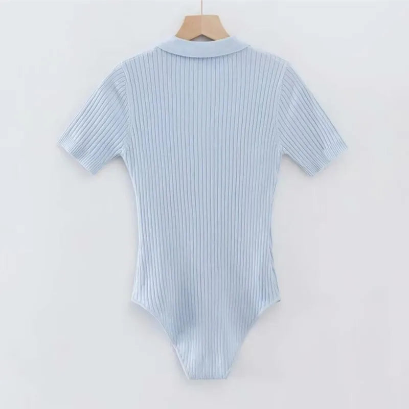 夏季性感POLO領羅紋針織短袖連身衣女式短款連身褲修身連身褲緊身連身褲