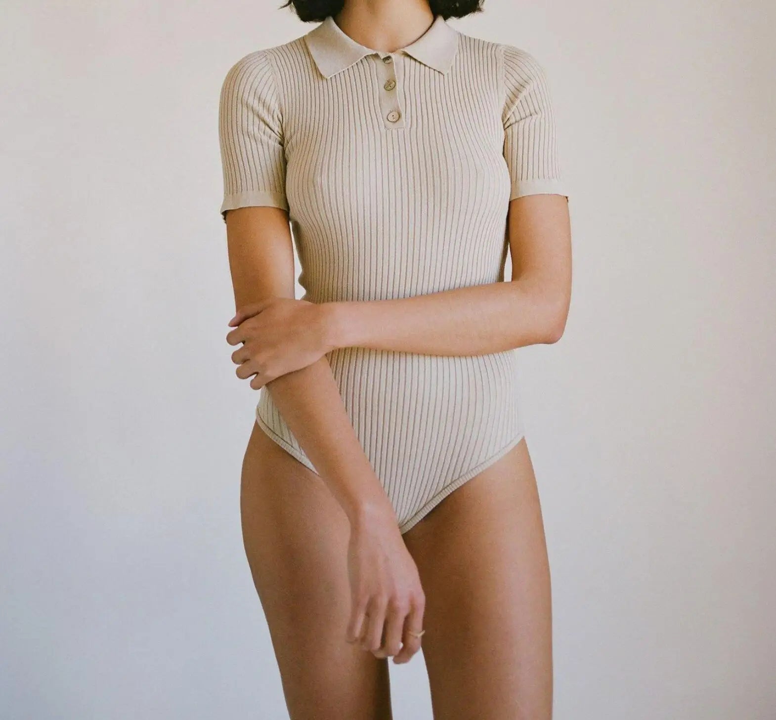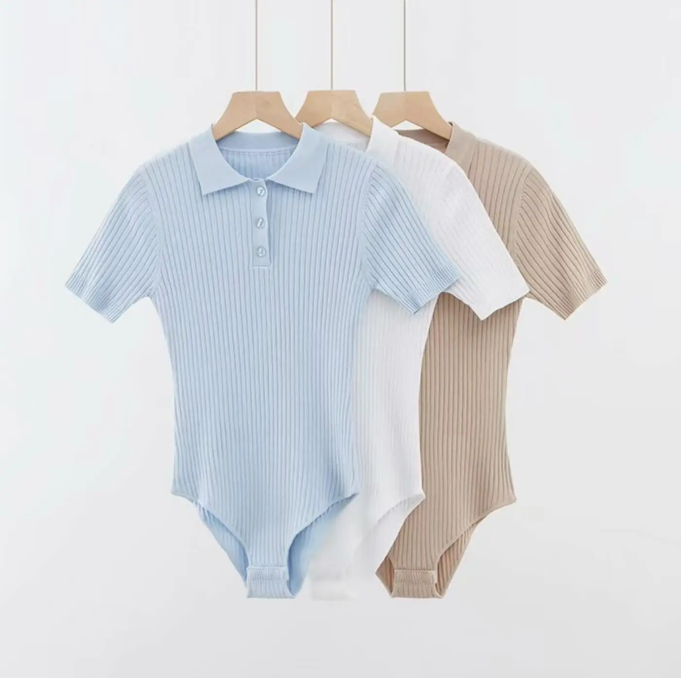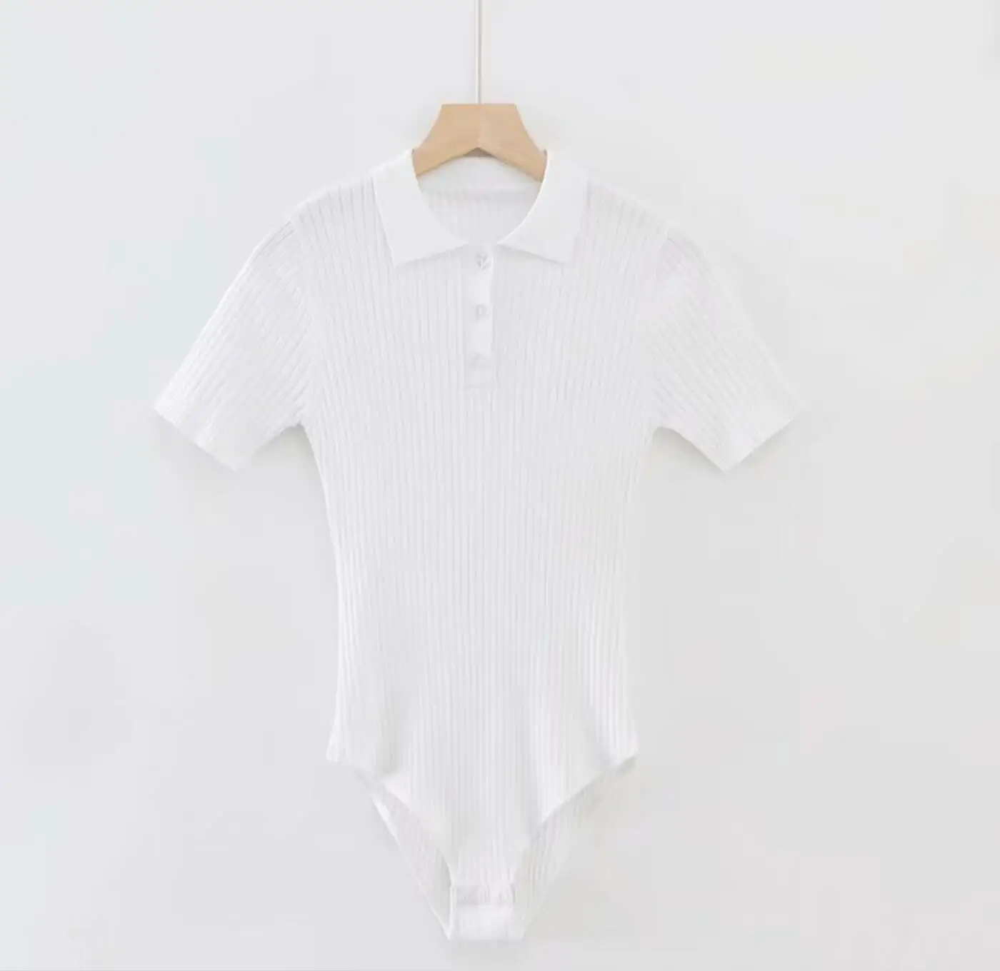夏季性感POLO領羅紋針織短袖連身衣女式短款連身褲修身連身褲緊身連身褲